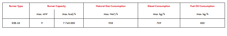 - There is a secondary air control servo in the combustion chamber to intervene in flame diameter and length in line with the process needs.