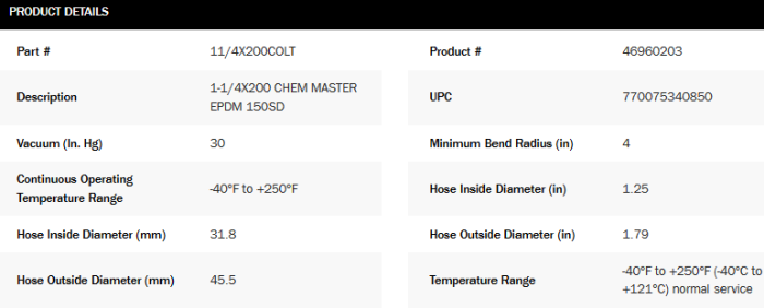 Chem Master - Model Plus XLPE EPDM 150SD -Industrial Hose