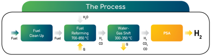 Applications: High purity hydrogen production suitable for automobile refueling stations, fat hydrogenation plants, glass and electronics industry, PEM fuel cells.