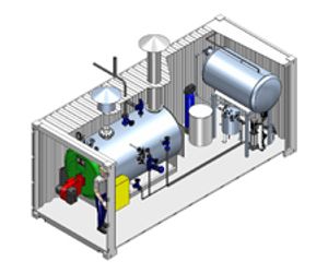 Container model is a mobile boiler room with the measurements of a 20-feet Standard sea container or an insulated container made to order, ready to connect and operate. The container is equipped with all the elements of a complete boiler room with a boiler RL model including water treatment equipment, flash vessel and all the indoor water, steam, condensate return and electrical installation and pipes.