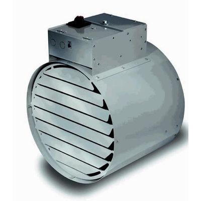 Round design of the industrial unit heater provides uniform airflow over the elements to prevent hot spots and ensure even discharge temperatures. Circular stainless steel finned tubular elements have a longer life due to lower operating temperatures.