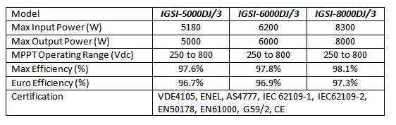 InfluxGreen - Model IGSI-5000DJ/3, IGSI-6000DJ/3, IGSI-8000DJ/3 -3-Phase Grid-Tied Photovoltaic Inverters