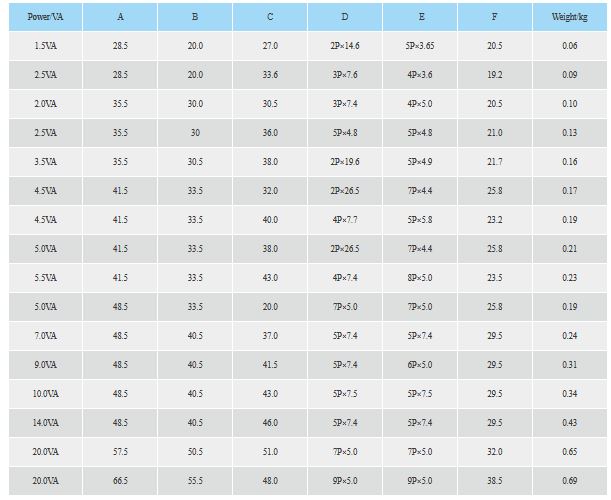 Power:0.5~30VA. Degree of Protection:IP00. Primary: 110/230V 50/60Hz. Secondary: 24/48VAC. Insulation class:Class Aã€Class B
