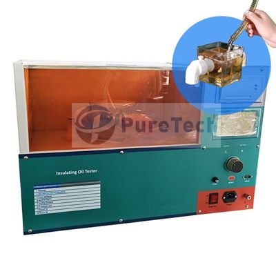 PureTech HYYJ-502 Insulating oil dielectric strength tester is designed for measurement of oil dielectric breakdown voltage strength according to international standards IEC and ASTM.