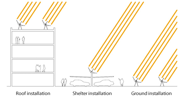 PTM can be used in both new and existing buildings to complement traditional energy sources.The parabolic troughs can be installed, in accordance to the relevant regulations, on flat roofs or on top of parking slot shelters. They can also be organised to create solar fields on ground.Thanks to its special characteristics, PTM functions also in rigid climates, representing an optimal solution for residential, commercial and industrial buildings.