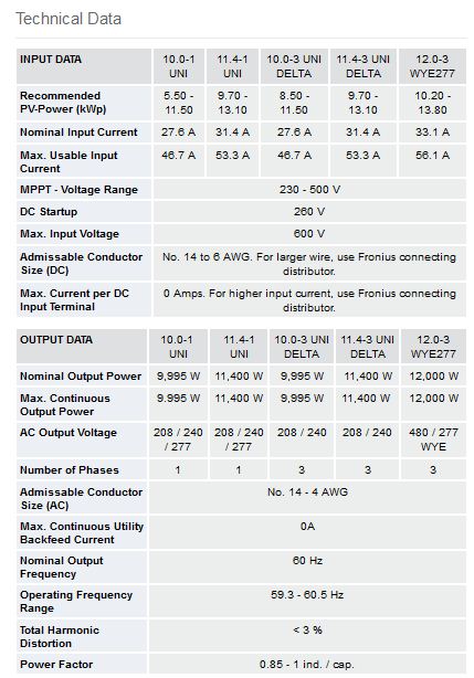 The Fronius IG Plus inverter line from 3.0 to 11.4 kW is field programmable to 208, 240 or 277 volts (Fronius IG Plus 12.0 kW only availabale in 277 volts), eliminating the need to install different inverter models to accommodate three-phase installations.