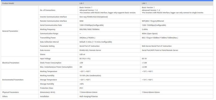 • 100M Ethernet interface, offering high speed transmission via cable network(Inverter Logger WiFi);