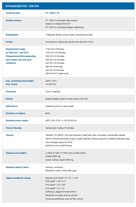 KL-Maschinenbau - Model PT 1300 K and PT 1300 W -1200 KW Dynamometer