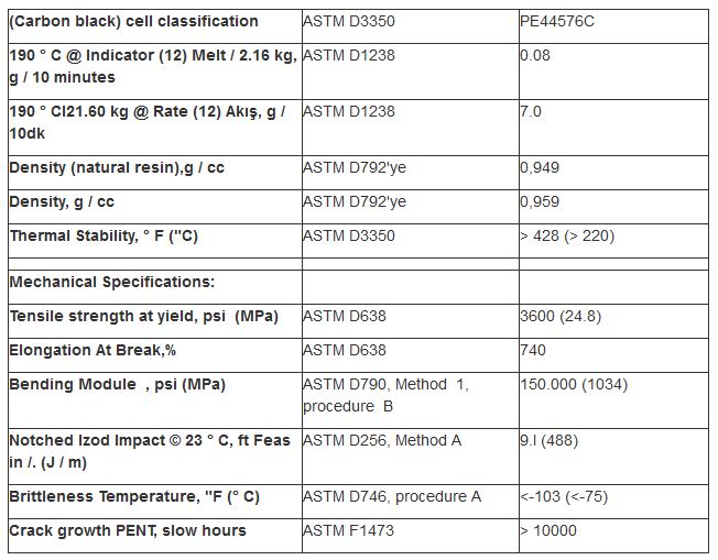 Represent a high impact resistance even at low temperatures, so a lot of the polyethylene and, consequently, provides a very important resource such as natural gas in the distribution of its widespread use. Polyethylene gas pipes 10827 TS, ISO 4437 and pipe produced in accordance with production standards and the most 1555 range Ø25-500 mm. PE100 pipes are used in Europe for many years visit our web site for more information and advice . (www.kuzeyboru.com.tr )
