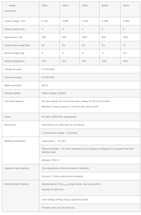 - High accuracy and precious measurement. The voltage meter on the control unit can directly display voltage value of loading test object and the voltage divider is not needed to connect with external voltage divider during using and It is easy to connect the wire.The instrument can measure leakage in high/low voltage termlnal.The high voltage terminal is displayed with circle Shield digital meter, which is strong resistance to discharge shock and good ante-interference and Is suitable for filed operation