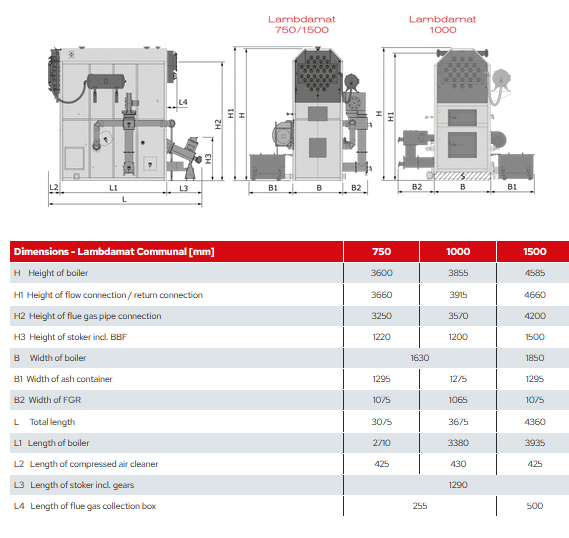 Froling‘s Lambdamat is a unique, fully automatic heating system for burning wood chips, shavings and pellets. It not only offers innovative combustion technology, but also a high level of convenience and operational reliability. The boiler sizes in the “Communal” version are suited to fuels with a water content of up to 50%. Thanks to the special combustion chamber shape, Froling’s Lambdamat is perfect for burning fuels of different qualities and with a high bark content. The hydraulic moving grate continuously transports the fuel through the combustion chamber, ensuring that even heavy fuels are completely burned. In addition to fuel loading by feed screws, this boiler technology can also be supplied with a hydraulic feed system.
