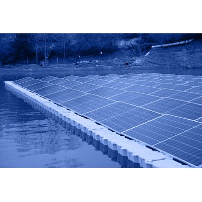 The light weight, stackability and two part design makes installing and transporting the floating photovoltaic plants easy. - 15º Tilt.