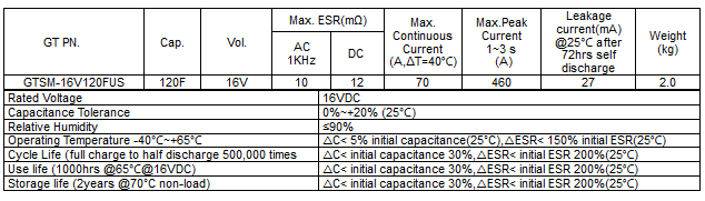 GTCAP - Model GTSM-16V120FUS -Large Current Super Capacitor Battery Module For Engine Starting