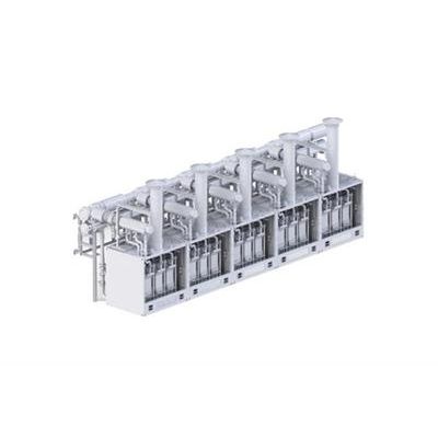 The HgasXMW product is a large electrolyser system built based on modules of three ITM Power stacks. Each 3-stack module is built on a skid frame suitable to be housed indoors and is rated ~2MW capacity at beginning of life. The number of 2MW modules in the system is scaled according to the hydrogen output or electrical input requirements of the customer. For example, a 10MW electrolyser system would be made up of five 2MW modules. Each 2MW module is able to operate independently of one another allowing for greater flexibility in load control and rolling maintenance. The 2MW modules are deployed alongside the vital sub-systems required for operation. Input water and output hydrogen purification options are available depending on specific requirements from the customer.