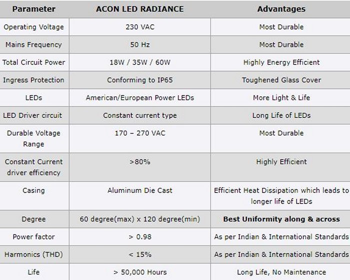 Led RadianceLed RadianceLed Radiance; Presenting ACON LED Radiance for illuminating Hoardings, Sign Boards & Back Lits. ACON LED Radiance Luminaries provide excellent uniform lighting without glary spots and with lesser number of fittings. ACON Radiance consumes nearly half energy as compared to other LED fixtures and delivers not just cool white light, but clean white light with outstanding visibility. Conserve energy up to 90% with zero maintenance cost and protection against voltage fluctuations.