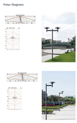 Whole body die cast aluminum housing. Double photometric diffuser technology. PC diffusion technology. Sealed lamp housing. Aluminum drawing pole.
