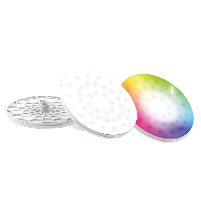 LED lights available in different diameters, luminous flux levels and colours. Wide beam angle shadow free pool lighting. Polymer housing, compatible with salt-electrolysis. RGB: 11 fixed colour programs. PAR56 niche retrofit solution, size 170 only. Easy to install, operates on 12VAC with 2-wire cabling, connection via unique connector. Part of DURAVISION: seamless integration with VISION Wall Conduits and VISION Face Plates.