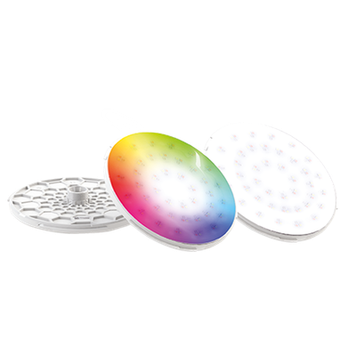 LED lights available in different diameters, luminous flux levels and colours. Wide beam angle shadow free pool lighting. Polymer housing, compatible with salt-electrolysis. High quality glass finish. RGB: 11 fixed colour programs. TW: 6 fixed white tones and blue. PAR56 niche retrofit solution, size 170 only. Easy to install, operates on 12VAC with 2-wire cabling, connection via unique connector. Part of DURAVISION: seamless integration with VISION Wall Conduits and VISION Face Plates.