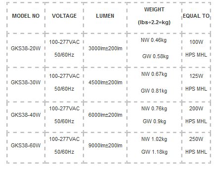 - Wattage: 20W 30W 40W 60W