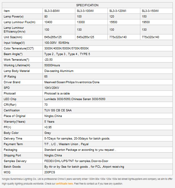 5 years warranty driver 130lm 80w 100w 120w 150w led street light.