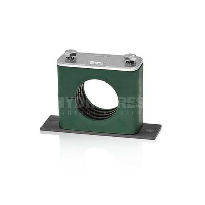 Application: Clamps for metric and imperial pipes from 6 mm to 101.8 mm. Material: Polypropylene, polyamide, aluminium, rubber. Accessories made of phosphate carbon steel, galvanised or stainless steel. Conforming to DIN 3015/1.