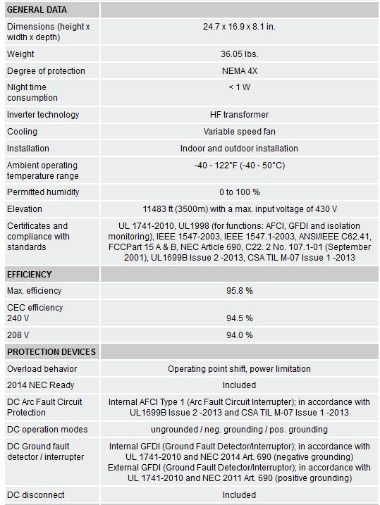Several features come standard including Wi-Fi* capability, Arc Fault Circuit Interruption, and the lightest weight design in its class. The Fronius Galvo not only offers convenience for a system owner but for the installer with the SnapINverter hinge mounting system, field serviceability and security locking capability. The Fronius Galvo provides low voltage start up, a super wide voltage window, and power classes from 1.5 kW to 3.1 kW, allowing for incredible flexibility in string design and the perfect fit for any solar system. The Fronius Galvo is now NEC 2014 compliant with the convenient and easy addition of the Fronius Rapid Shutdown Box.