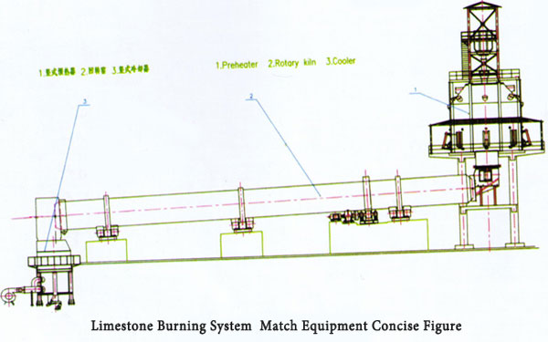 Broken qualified limestone enter into lime calcining system.First,limestone enter into vertical preheater to preheat, which can shorten the calcined time inthe kiln and can obtain higher degree of activity lime.Then limestone enter into rotary kiln to burning.Last,burned limestone enter into the vertical cooler to cool.