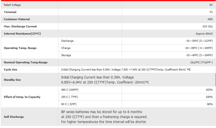 Brava - Model VRLA AGM BATTERY BP6-1.3(6V1.3Ah) -Lithium Car Battery