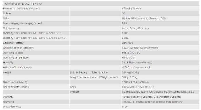 TESVOLT - Model TS HV 70 -Lithium Storage System