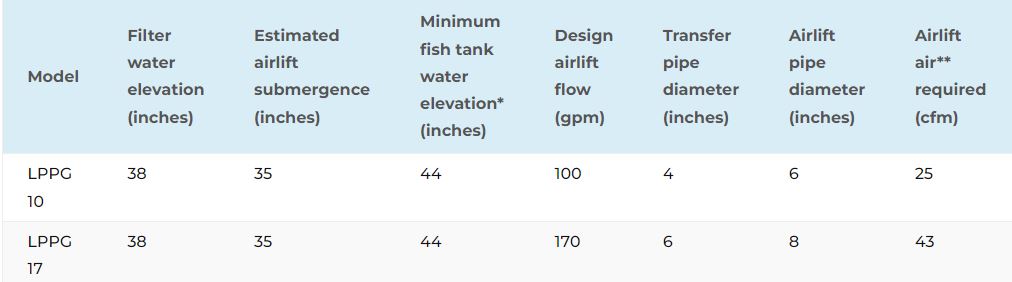 • Energy savings up to 60% when airlift technology is utilized