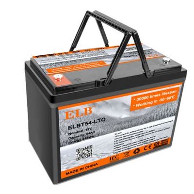 ELB 12V 54Ah low temperature LTO lithium battery built with lithium titanate chemistry. Which offer BMS controlled safety, long life,fast-charging performance(Optional Bluetooth function,which can real-time Bluetooth Access to battery SOC, Voltage, Current, Temperature status). This battery have super low temperature performance in -40? and last more than 20000 times. The BMS embeds smart balancing algorithms that control all cell voltages in the battery, making sure they are constantly at the same voltage level, optimizing battery capacity. Develop to high efficiency energy output, the series battery can accept to 1C contiouous charge/discharge current which can make the battery full-charged in one hours.