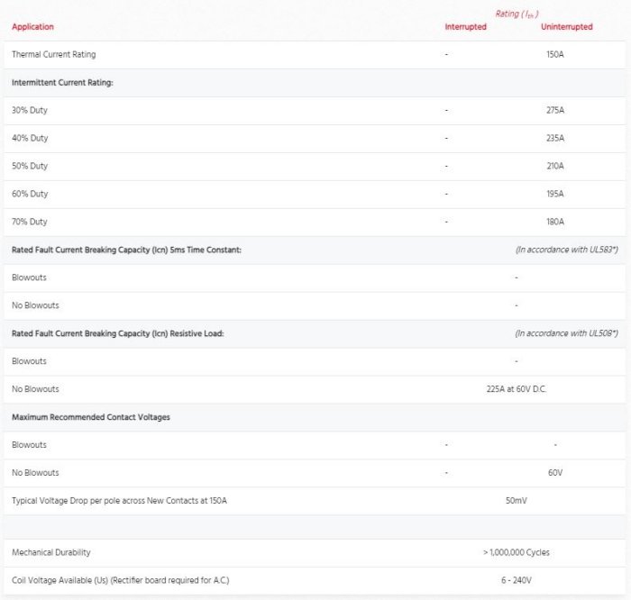 The RW150 features double breaking main contacts with silver alloy tips which are weld resistant, hard wearing and have excellent conductivity. Silver plating on the main contacts is optional for the RW150. The RW150 is a compact contactor which can be busbar mounted vertically or horizontally, if mounted vertically the coil should be at the bottom. If the coil is required at the top, we can adjust the contactor to compensate for this.