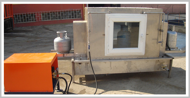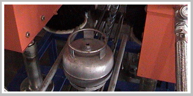 Cylinders passing through a cabin made from stainless steel are hot and cool washed with two pressure pumps, non stop passing of the cylinders avoid time waste. Cylinders leaving the wash cabin are dried with high pressure fans.