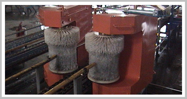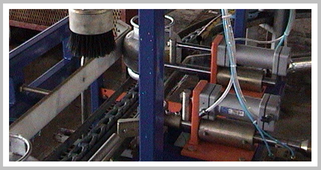 - Rotating brush descends onto the cylinder held by the stopper and ensures brushing. This process is completed in very short time.