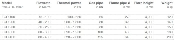 The ECO flare is manufactured entirely from stainless steel and equipped with high quality components (i.e., ATEX certified flashback prevention, DVGW certified manual flap…).