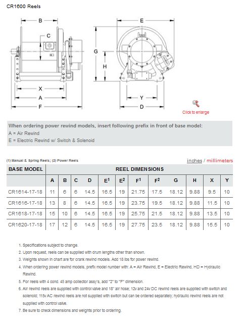 Hannay - Model CR1600 -Manual or Power Rewind Reels for Live Cable