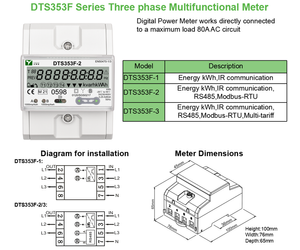 The DTS353F Series Digital Power Meter works directly connected to a maximum load 80A AC circuit This meter has been MID B&D Certified by SGS UK, proving both it’s accuracy and quality. This certification allows this model to be used for any sub-billing applicationMeasurement function