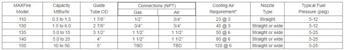 - Capacity range from 0.3 to 50 MBtu/hr.