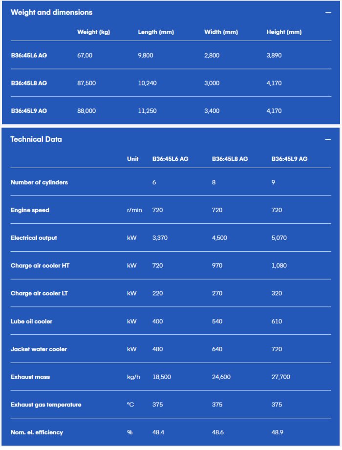 Close dialogue with our customers and the service organisation has given valuable input to the development of more efficient solutions – both for assembly and maintenance. The result is a robust and powerful engine, delivering up to 600kW per cylinder, with world class efficiency and reduced life-cycle costs. Our latest engine series is built on more than 70 years of experience. Our legacy, with all its valuable knowledge and experience, has been an important foundation for the development and testing of new technologies. The B36:45 gas engine is a medium-speed lean-burn unit designed to produce up to 12 MW of mechanical power with optimised combustion technology and excellent load responsiveness. The design has been driven by stringent requirements for lower exhaust emissions, highest possible electrical and heat recovery efficiency, coupled with extreme reliability.