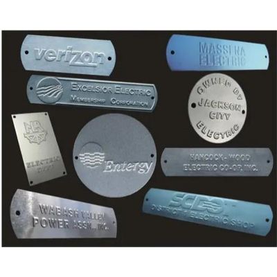 Unpainted, embossed aluminum or brass. Raised embossed copy last the life of the pole. The highly defined characters are legible forever. Please specify size.