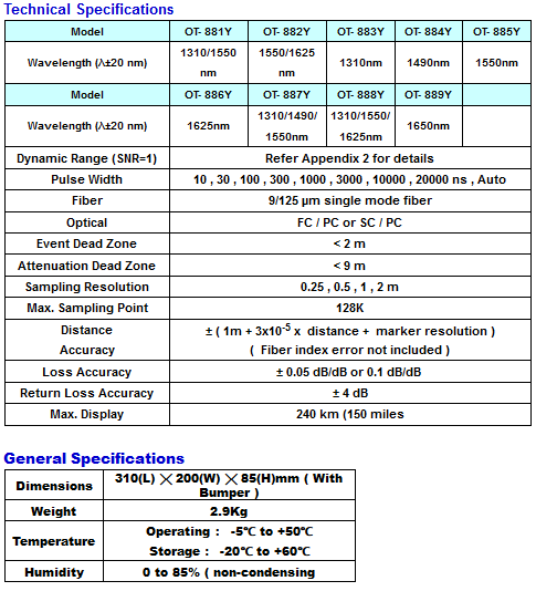 OT-8800 series instruments are compact, cost-effective, portable and high dynamic range Mini Optical Time Domain Reflectometer (OTDR). By providing all the measurement functions and performance required for optical fiber construction and maintenance, it is designed for full-range fibre fault detection to solve FTTx, CATV and optical LANs problems