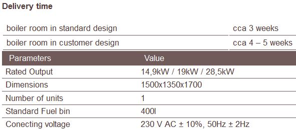 Boiler room can be used to supply a single object. Operation of the boiler room is controlled by a separate measurement and regulation system. Transport of pellets into the boiler - automatic – through augers.