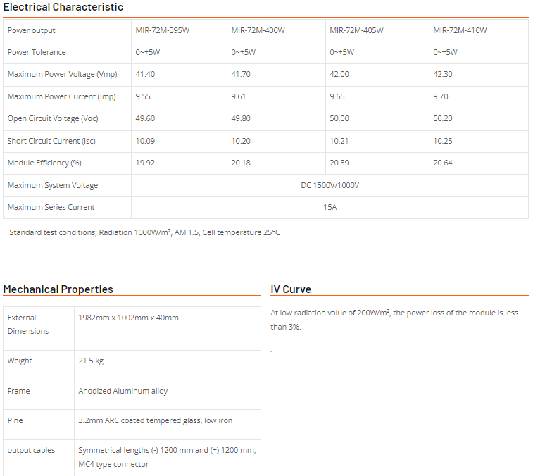 - Mirsolar - Model MIR-M72 - 395 Watt ...