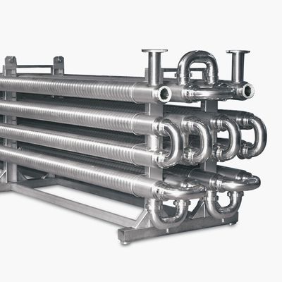 The Monotube MIXFLO Heat Exchanger consists of two concentric corrugated tubes. The product to be thermally processed flows inside the smaller tube while service fluid flows inside the external jacket. The Monotube MIXFLO Heat Exchanger is fully welded with expansion joint when necessary.