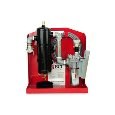 The PFPU-8 is factory preassembled and consists of an RCI FP 800 fuel purifier, a self-priming pump, a UL-approved motor, a panel with drip tray, and suction and return hoses. It utilizes RCI’s patented fuel purification technology and is used as primary fuel purification, with the ability to remove up to 99.8% of free water and up to 95% of other heavy contaminants, down to approximately 10 microns.