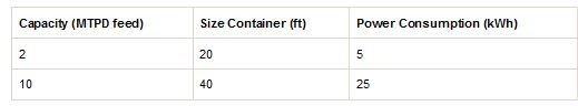 Trailer mounted or 20ft container =LxWxH 6×2,4×2,6m; 40ft container =LxWxH 12×2,4×2,6m