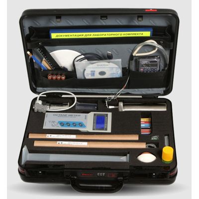 Portable laboratory for sample taking and on-line acceptance analysis of fuel with standard and express methods. The analysis results allow to estimate with great accuracy the fuel quality in conditions when analysis in stationary labs is not possible. The laboratory set allows to measure up 19 basic parameters of fuel quality. The test methods are as follows: Institute of Petroleum Chemistry, GOST, 25 GosNII Himmotologiyi MP RF, Joint stock company Sorbpolimer.