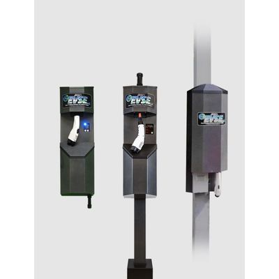Equipped with Our State-of-the-Art Cable Management System and Now Available in a New Single Utility Pole Mounted Version. With installations at major U.S. utilities, state and local governments, universities, airports and parking facilities, EVSE LLC is an established innovator in the electric vehicle battery charging industry. Our 3704 AutoCoil Level 2 (with Level 1 capability) EV chargers come in wall and single or dual pole-mounted versions, as well as a new single utility pole-mounted version. The 3704 AutoCoil EV chargers offer patented automatic cable management that is ADA and OSHA compliant. This revolutionary system ensures that our electric vehicle battery charging station cables never touch the ground when not connected to a vehicle or even when charging a vehicle. This helps pedestrians avoid tripping accidents and protects property owners from risk and false accident claims while keeping charger station cables out of the pathway for persons with disabilities.