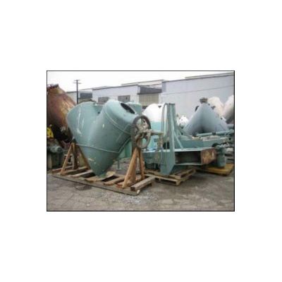 40 cubic foot Patterson Kelly, Twin Shell Solids Processor Dryer, 304 stainless steel construction, rated full vacuum internal, jacketed for 15 PSI at 200º F, 65 pound maximum material density, standard feed ports with covers, 10` discharge high speed liquid feed bar with drive, 5 HP variable speed shell drive, on stands with Stokes vacuum pump, shell & tube heat exchanger & receiver tank.