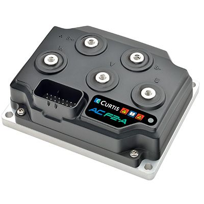 This AC motor controller uses dual high performance ARM Cortex microprocessors in a compact, package to deliver unmatched performance and a very flexible feature set. Model AC F2-A is optimized for use as a traction controller on 1.0 ton-2.0 ton Class III pedestrian-operated powered pallet trucks. The controller is also suitable for traction or hydraulic pump control on other types of battery powered vehicles. Vehicle designers can define and control the dynamic performance of vehicles’ drivetrains. Model AC F2-A is also a powerful system controller that can operate as a commander device on the CANbus.